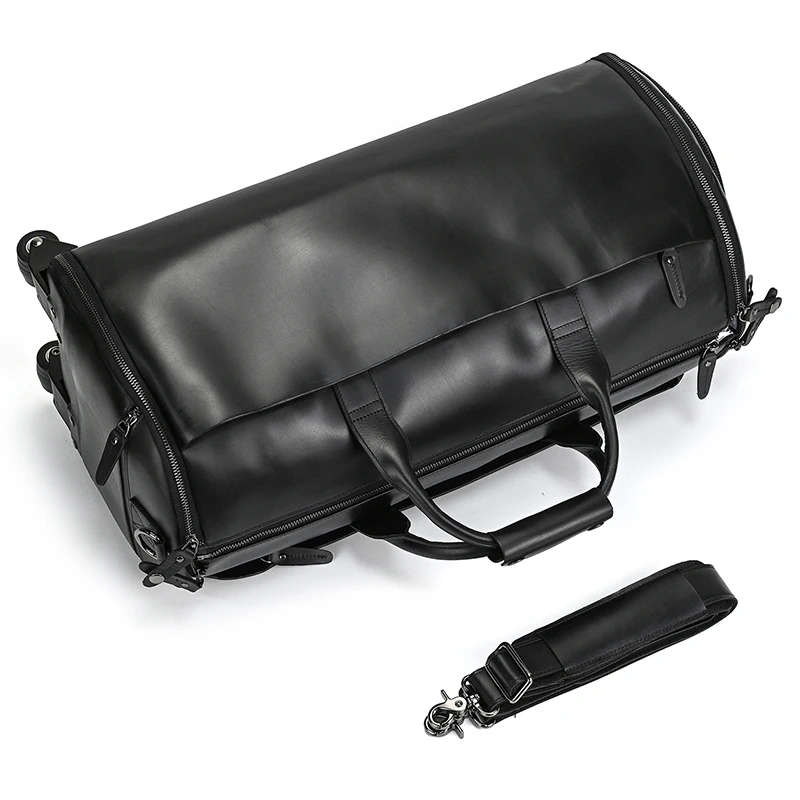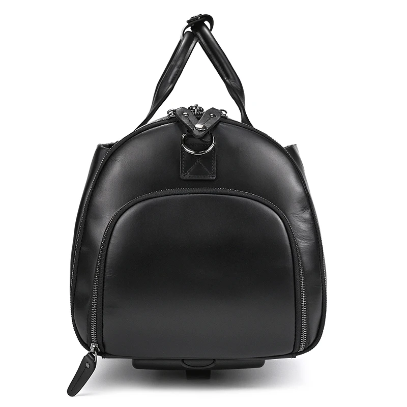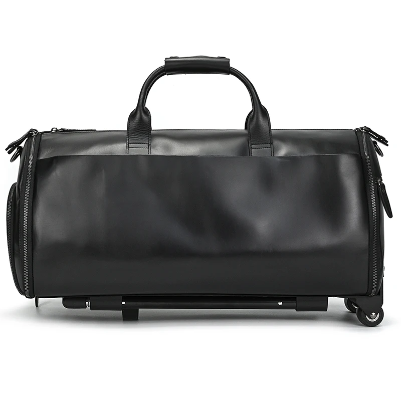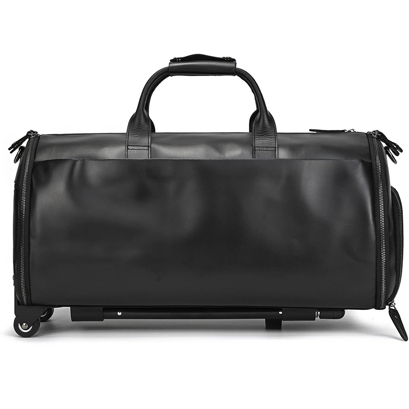 Luufan Crazy Horse Leather Trolley Bag With Wheels Man Business Travel Bag Shoe Pocket Clothes Cover Suits Luggage Duffel Bags
